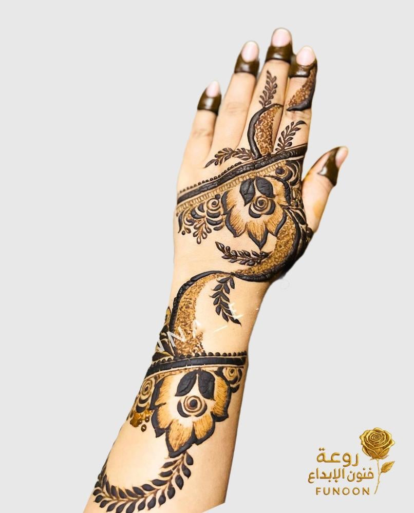 - تصميم مخصص لتزيين اليدين بنقوش حناء جذابة.